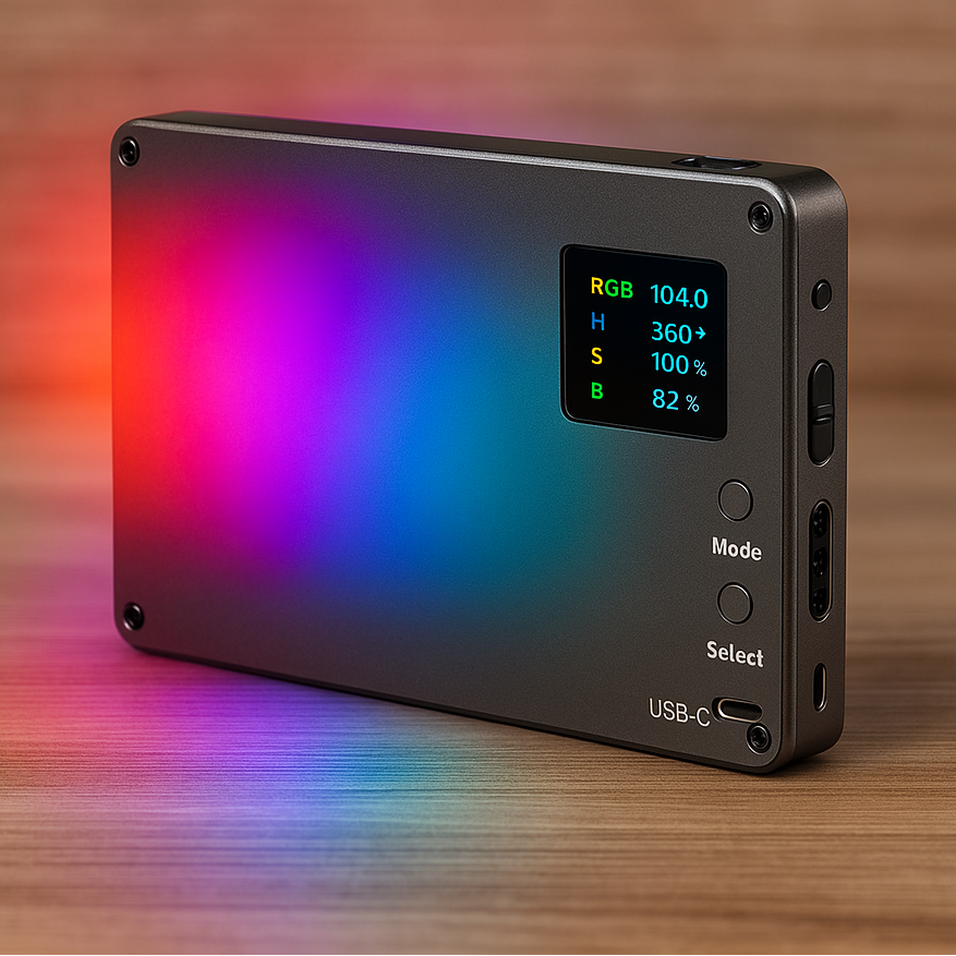 RGB LED Light with OLED Display, Adjustable Brightness & 360° Color Control, USB-C Charging, 21 Preset Effects, Multi-Scene Lighting for Photo & Video Shoots, portable RGB LED Video Light, 24 Effects, 2500K-9000K, 4000mAh